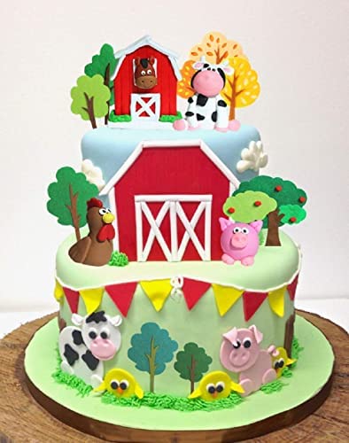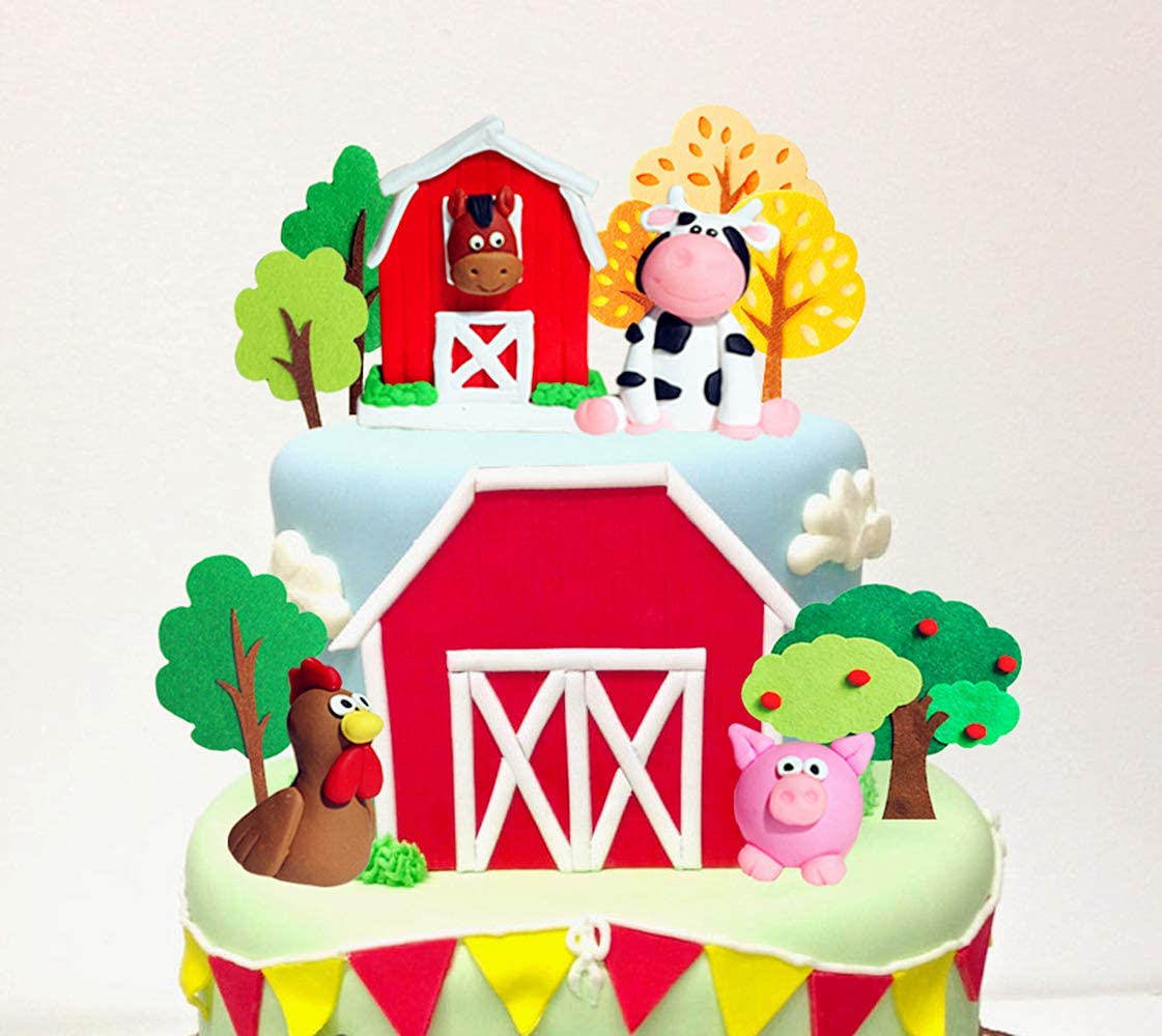 Decorate your party with this farm animal cake topper Use it to decorate a wall, backdrop or cake table. Farm Animal Cake Decoration: inspired by our favorite barnyard friends! This Farm Animal Cake Decoration would be perfect for Farm Animal birthday parties, Farm Animal baby showers, or nursery decor! This listing is for an adorable Farm Animal Cake Decoration! Will be the perfect addition to your little ones party! Cow Cake Decoration is perfect for your barnyard/farm animal themed birthday party! Package included 1 x horse cake decoration, 1 x cow topper, 1 x cock topper, 1x pig topper.7 x tree picks. Size as shown in the picture.