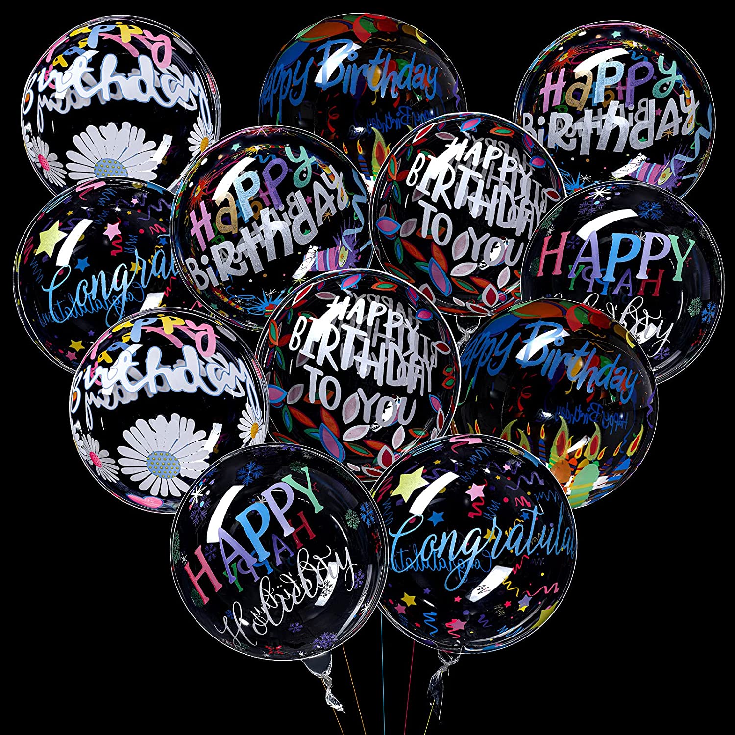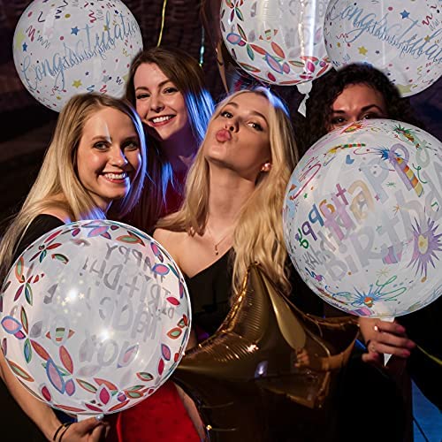 12 Pieces Happy Birthday Balloons Transparent Bobo Balloons Clear Round Balloons Colorful 4D Balloons for Birthday Party Wedding Decoration Baby Shower, 20 Inches