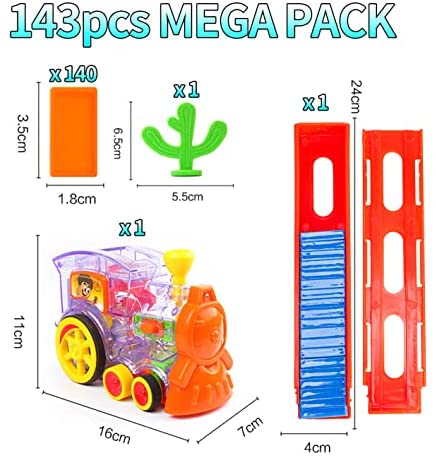 140 pcs Domino Train Car Toy Mega Pack Dominoes for 3-12 Years Old Boys Building Blocks Stacking Tile Games 60pcs + Extra 80pcs Domino Blocks