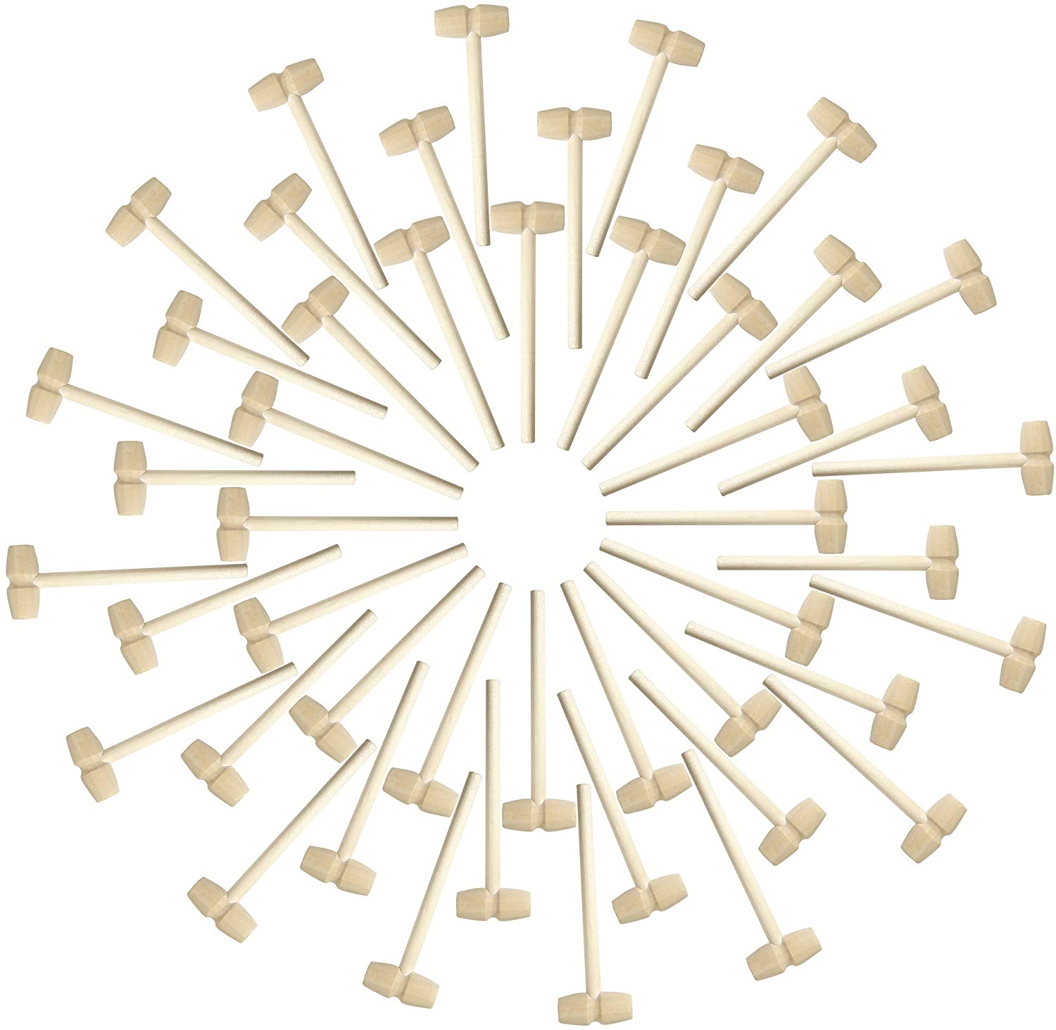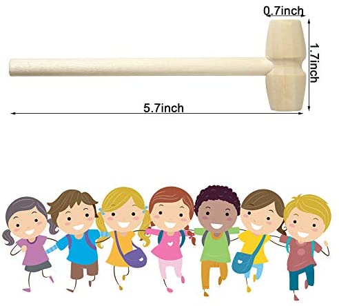 Mini wooden hammers The hammers are made of natural wood with smooth finish, solid and durable for long time use. Hammers can be used as kids educational toy hammers. Kids like to pinch these small hammers and beat freely. Size of hammers: 5.7×1.7×0.7 inch. Package includes 50 pcs mini wooden hammers