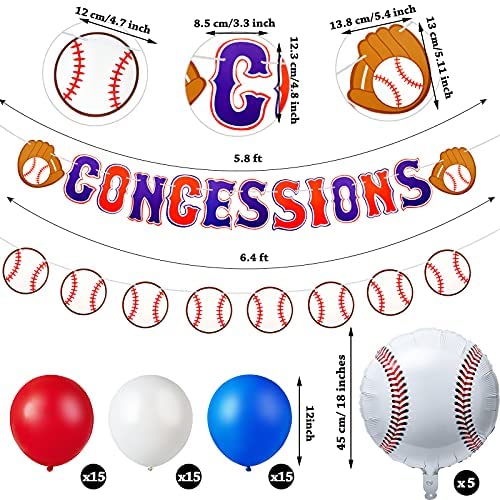 52 Pieces Baseball Party Decorations Kit Include 50 Baseball Themed Balloons and 1 Baseball Concessions Banner 1 Baseball Paper Garland for Sports Themed Party Birthday Party Supplies Photo Prop
