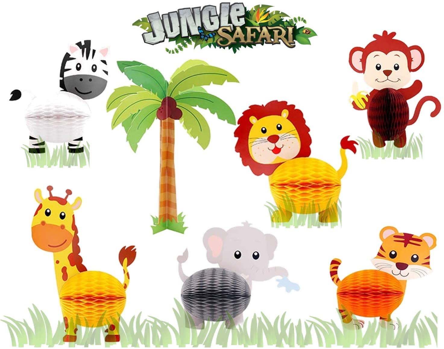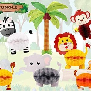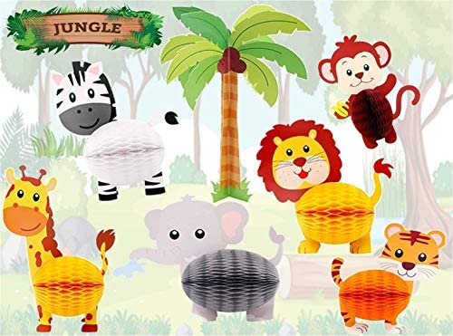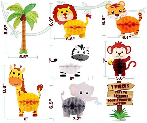 7 Pc Jungle Safari Animal Honeycomb Paper Centerpieces Set Party Decorations Supplies u2013 3D Decor Theme Birthday Party, Baby Shower
