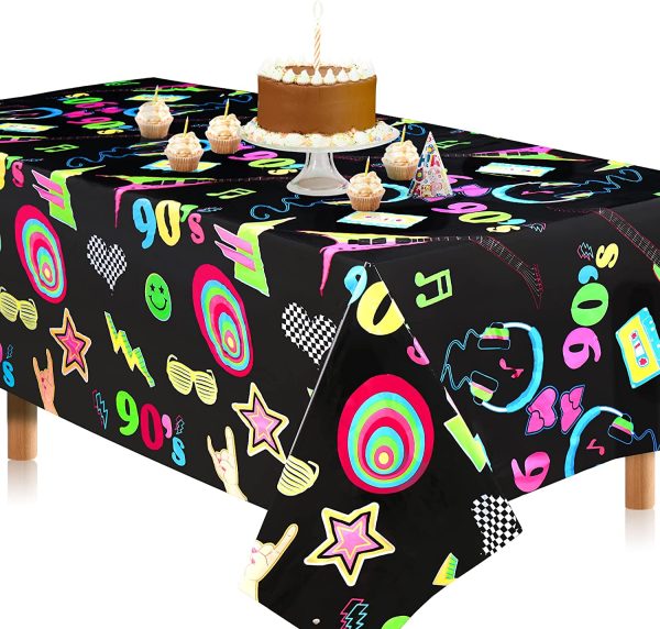 90s Party Tablecloth, Extra-Large 108u201d x 54u201d Disposable Back to The 90s Plastic Table Covers, Ideal for Adults 1990s Theme Hip Hop Birthday Party Supplies Decoration (2)