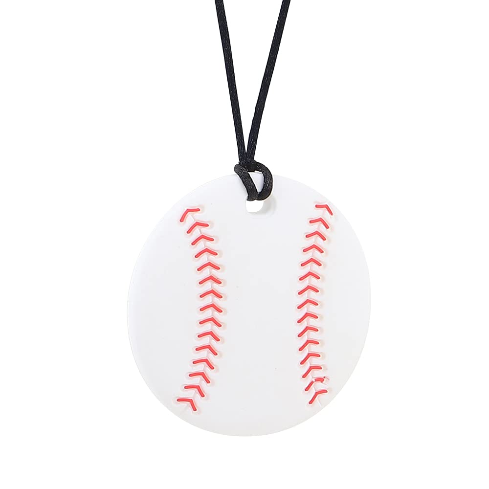 AmazingM Sports Sensory Chew Necklace for Boys and Girls,Food Grade Silicone Safety Pendant Chewy Teether Jewelry for Kids with Autism, ADHD,Oral Motor,Teething,Biting Needs (Baseball)