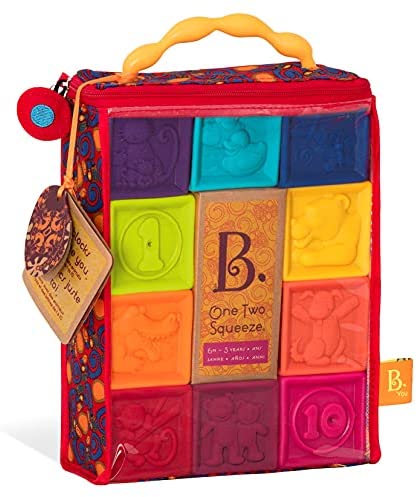 B. toys u2013 One Two Squeeze Baby Blocks – Building Blocks for Toddlers u2013 Educational Baby Toys 6 Months & Up with Numbers, Shapes, Animals & Textures u2013 10 Soft & Colorful Stacking Blocks