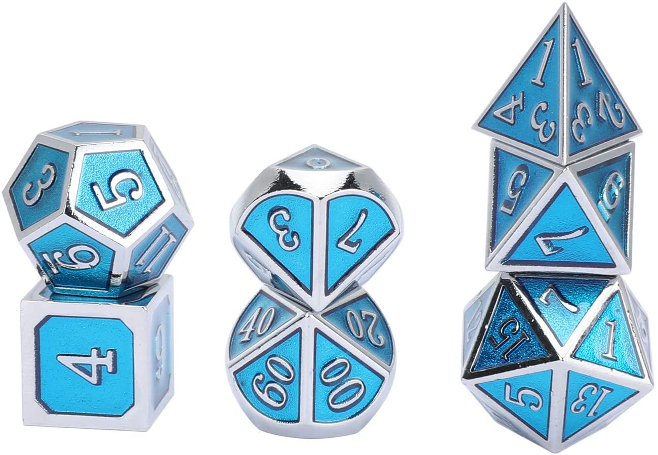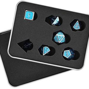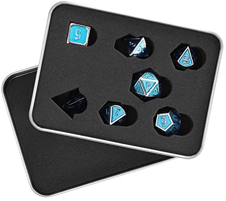 Features:High Quality Ancient brass metal dice,Zinc alloy materials, extremely durable,with easy reading in good weight and mini size.The design is perfect for D&D character,very unique and attractive.Polyhedral Design: Set of 7packs including D4, D6, D8, D10*2, D12, D20.It’s heavier than a normal dice and very nice feeling.The dice are perfect for RPGs such as Dungeons and Dragons, Shadowrun, Pathfinder, Savage World, and many other PRG and Math Teaching.Comes with a durable metal box for storage.Specifications:Quantity:7pcsShape:Polyhedral Materials:Zinc alloyColor:Ancient brass30-Day Money-Back GuaranteeNot satisfied with your order Let us know and well make it right, no questions asked. Our goal is for you to be 100% satisfied. If your dice don’t meet your expectations, just shoot us an email and we’ll get on it right away. Note: Please dont roll these dice on polished, fragile, or otherwise damageable surfaces, as these dice can do serious damage.Warning: Contains small (and sharp) parts; not suitable for children under the age of 7.Package Include:7* Ancient Brass Metal Polyhedral Dices5* Metal Box
