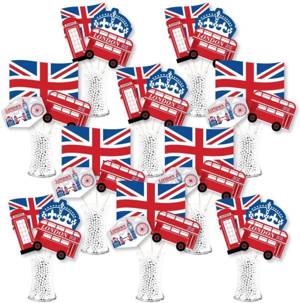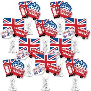 Big Dot of Happiness Cheerio, London – British UK Party Centerpiece Sticks – Showstopper Table Toppers – 35 Pieces