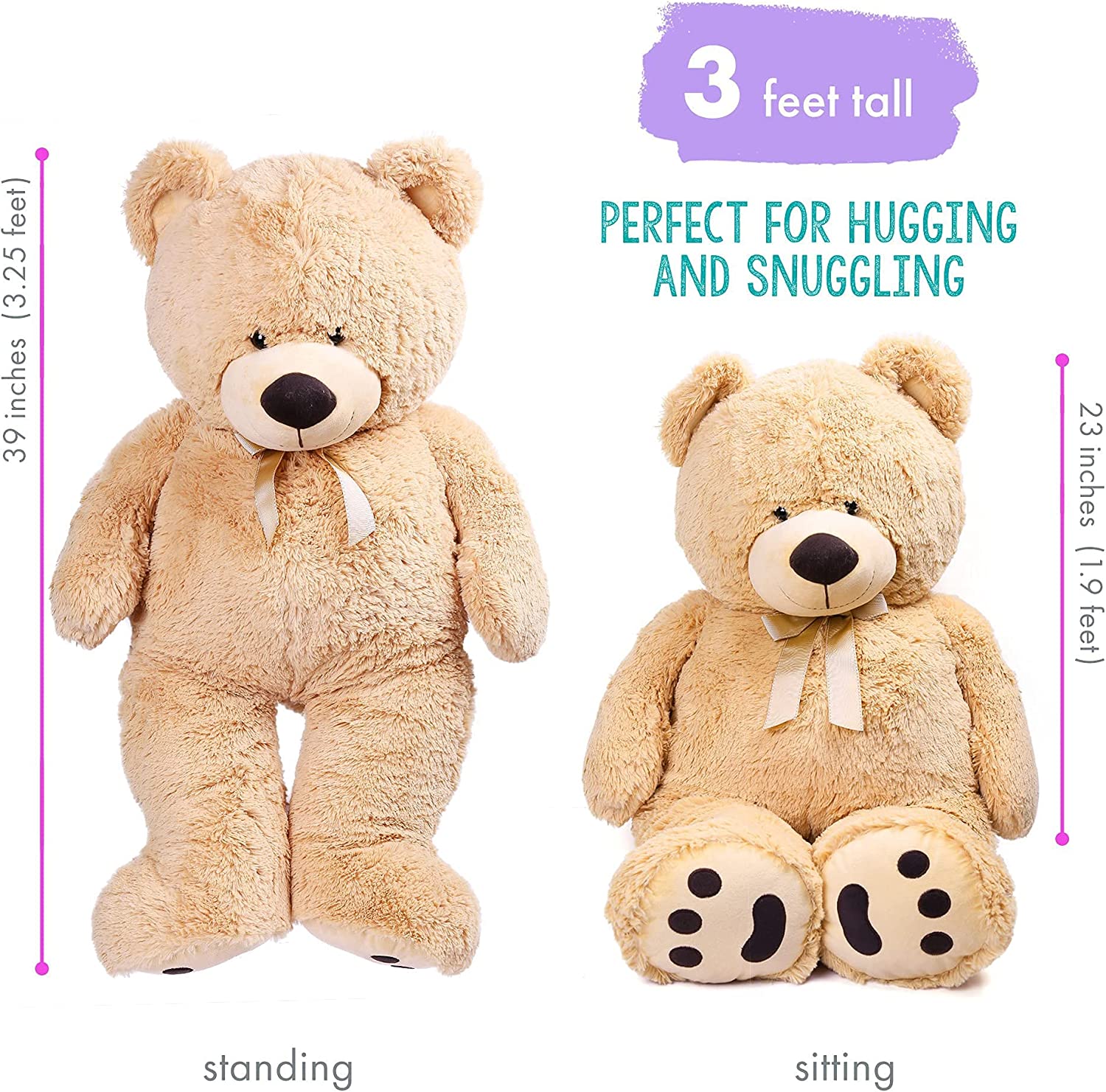 23 inch Sitting Size: Our stuffed large teddy bear plush toys measure 3.3 Feet (39 inches) tall – from ears to feet; Sitting Height measures about two Feet (23 inches); Surface-washable; Recommended for ages three and up