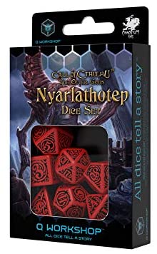 The messenger of the Outer Gods, Nyarlathotep walks the Earth serving them. His weapons are deception and propaganda. He has many names, faces and cults all around the globe. Are you sure that youre not under his influence right now This unique set of polyhedral dice (D4, D6, D8, D10, D12, D20 and D100 percentile) has originally been funded through Kickstarter, and now its available in new color version to all Mythos fans!