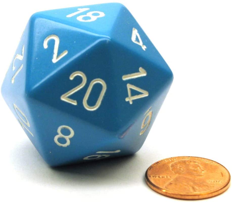 You get one large 34mm d20 made of the same high quality plastic that you have come to expect from Chessex. These dice fill up your hand, giving yo…
