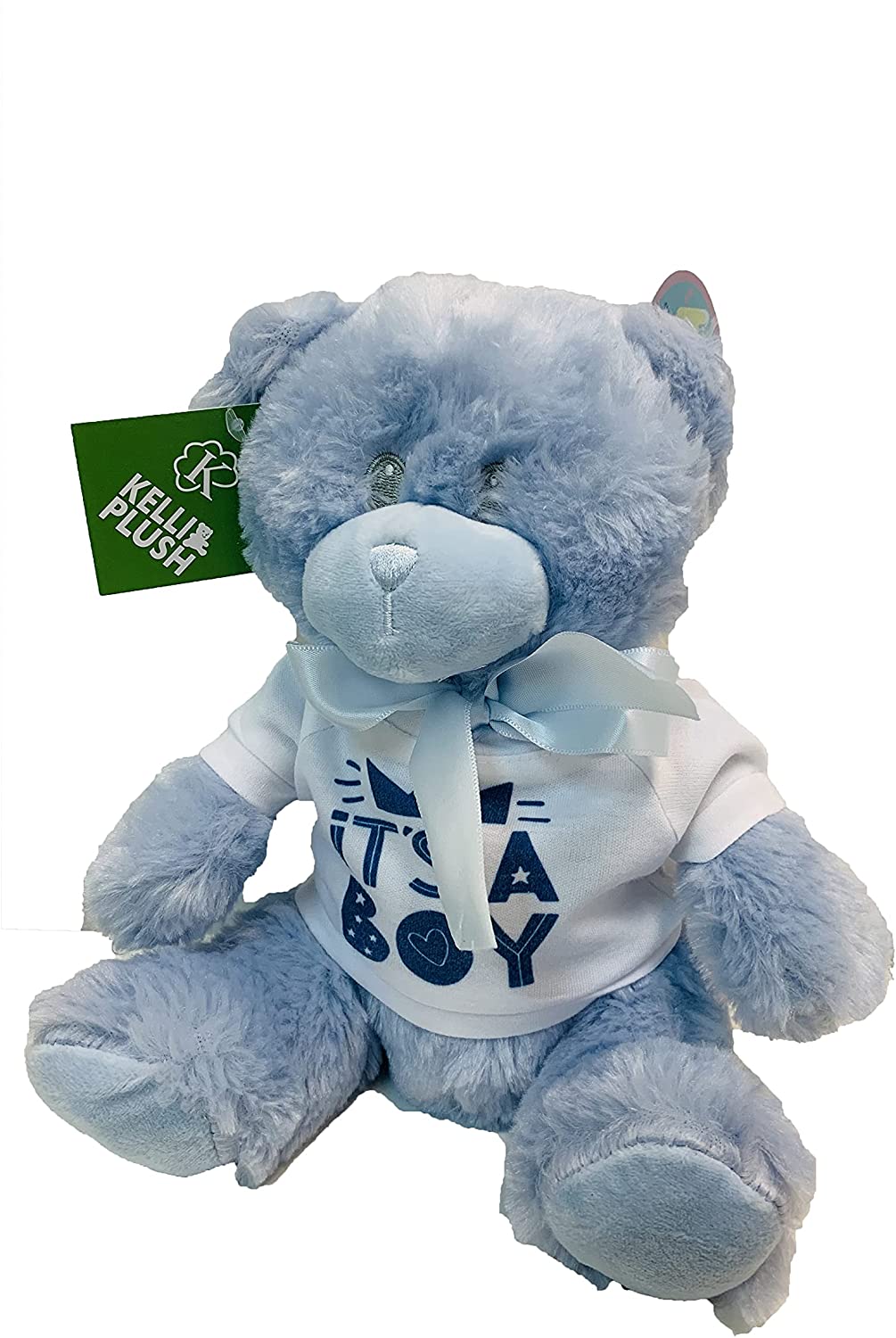 CustomizedbyBilgin Itu2019s a Boy T-Shirt Teddy Bear Stuffed Animal Plush in Blue 11 Inches Birth Announcement (Blue Bear)