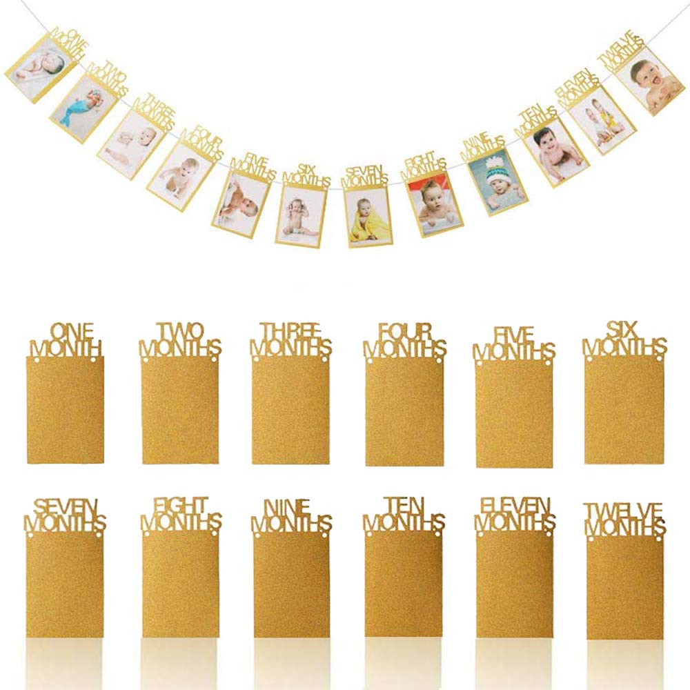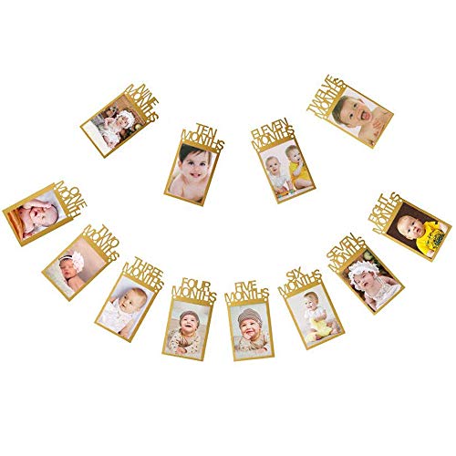 First Birthday Photo Banner, 1st Birthday Decorations, OOTSR 12 Month Photo Banner for Birthday Party Supplies Bunting Decor