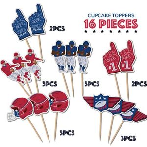 Football Cupcake Toppers And Wrappers Serves 16 | Football Cupcake Liners Decorations Theme Birthday Sports Game Super Bowl