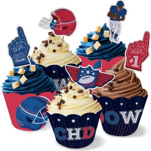 CROWN YOUR CUPCAKES WITH ADORABLE GOODNESS – Your guests will love the vibrant colors and the details on the toppers. Makes it easy to style a football themed party. QUALITY YOU’LL LOVE – Made of high quality cardstock. Dimension of each topper is 5.2’’ / 13cm , and wrappers 7.87’’ x 1.9’’ they should not be baked. ENOUGH FOR THE HOLE PARTY – Football cupcake decorations set includes 16 reversible cupcake wrappers and 16 liners. SO EASY TO ASSEMBLE – Just wrap them around the base of your cupcake, and lock the tab in! Pop the decoration on top and you are ready! These wrappers are not to go into the oven. BUY WITH CONFIDENCE – Were here for you! We offer a 100% money-back guarantee if you are not completely satisfied with our football picks. Have any questions Were always happy to hear from you and answer any questions!