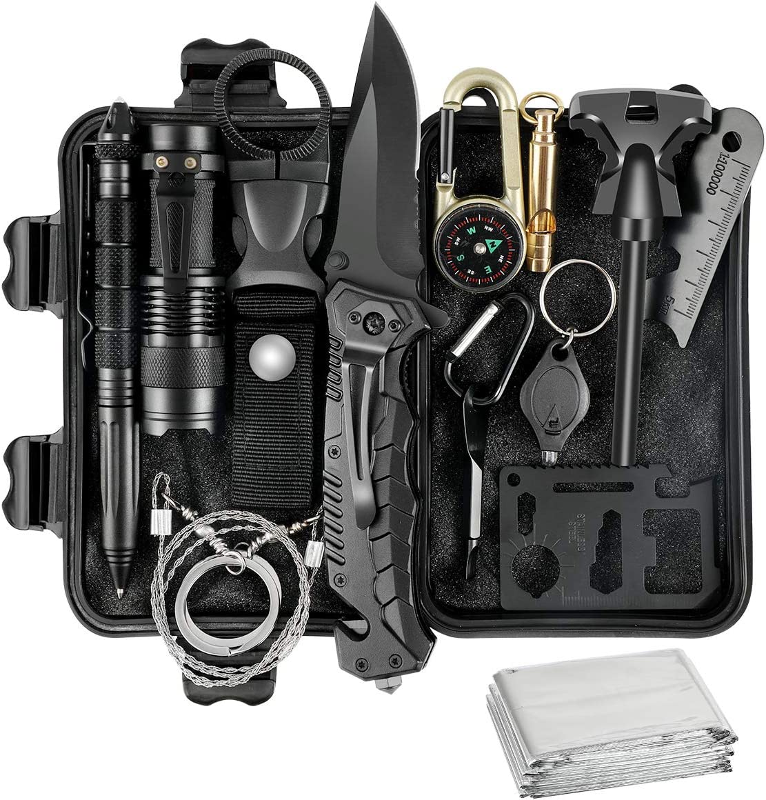 Gifts for Men Dad Husband, Survival Kit 14 in 1, Survival Gear and Equipment Cool Gadget Birthday Ideas, Emergency Tactical Kit for Hiking Hunting Camping Adventures