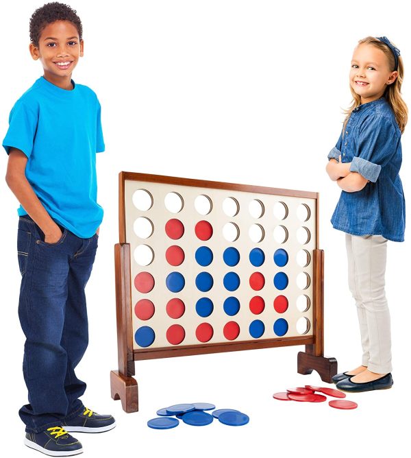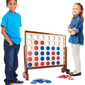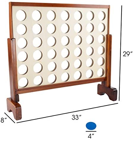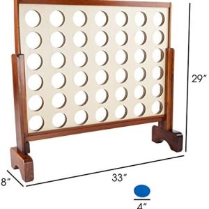 Hey! Play! 4-in-A-Row–Giant Classic Wooden Game for Indoor and Outdoor Play–2 Player Strategy and Skill Fun Backyard Lawn Toy for Kids and Adults