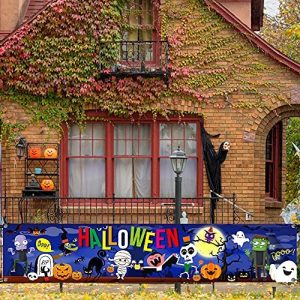 Halloween Party Decorations Banner: 9.8ft x 1.96ft High Quality: The halloween party supplies banner is made of good quality material vinyl, its durable, colorful, and easy to set up, you can use it decorations the yard outside Unique Design:Ghosts, pumpkins, zombies, cemeteries, mummies and the symbols of Halloween, black cats, bats, and witches, all gather together on this night, perfectly blending on a huge banner, hanging it on the fence, passing children Everyone will come to you for Trick or Treat, the holiday atmosphere is self-evident. How to Use: You can hanging it as a yard sign, put it on the tree, on the car, outdoor and indoor party decorations BUY IT WITH CONFIDENCE: ADD TO CART NOW! It will be the good choice for you to have it. If you have any questions, pl contact me, we will keep in touch!