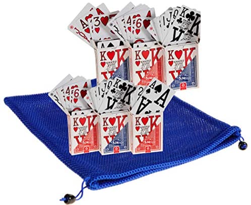 Low Vision, Very Big Numbers Playing Cards, Bundle of 6 Decks , with Nylon Mesh Blue Drawstring Carry Bag, Bundled Items