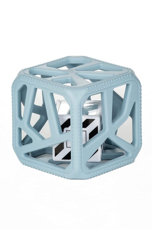 Malarkey Kids Chew Cube Baby Chew Toy, Baby Toy Rattle Teether, New-Born Toy – Heals Aching Gums, Four-Way Sensory Stimulation, Easy Grip, BPA Free Food Grade Silicone Material (Steel Blue)