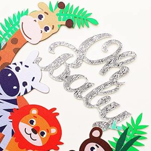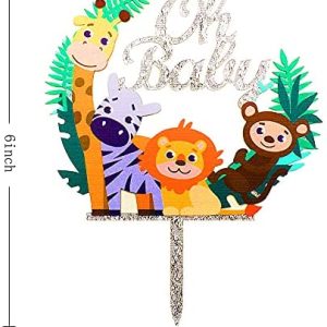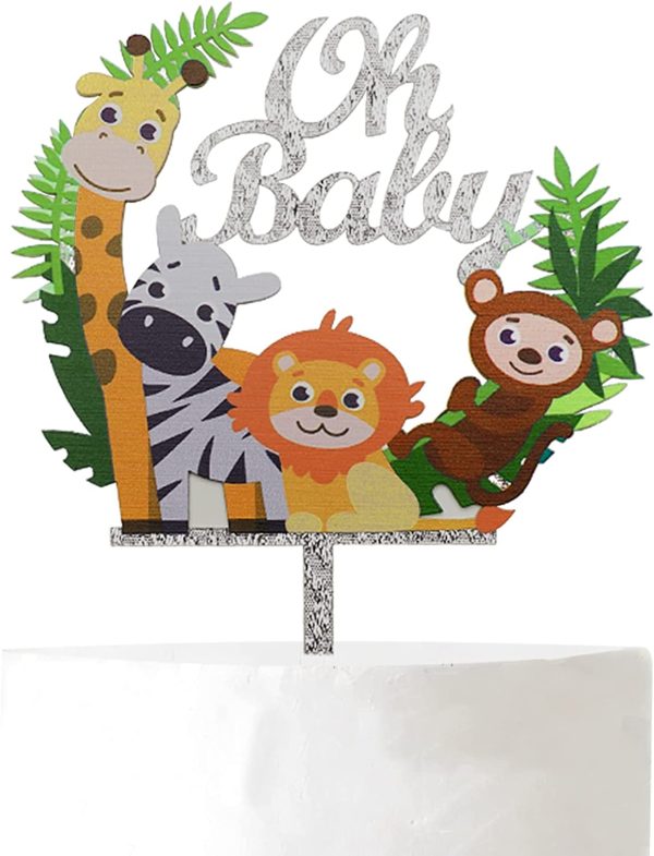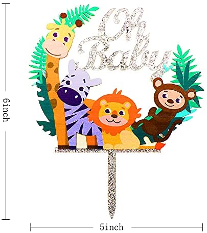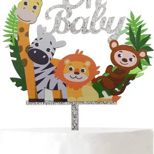 NMAS Oh Baby Animals Cake Topper Silver Glittery Acrylic for Jungle Theme Baby Shower Child Birthday Party Decoration Supplies