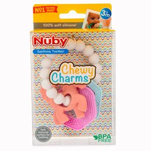 Nuby Chewy Charms 100% Soft Girls/Butterfly and Flower Silicone Teether, Purple/Pink/Yellow