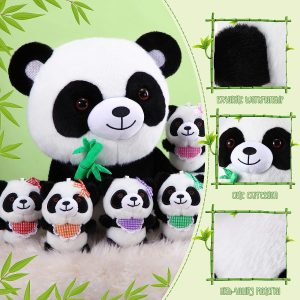 Plush Panda Set: you will get 6 panda stuffed toys, including 1 mom panda with bamboo and 5 baby pandas with plaid collar and bowtie; They have lifelike appearance and fine workmanship, which can meet your decorative needs