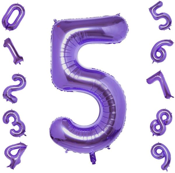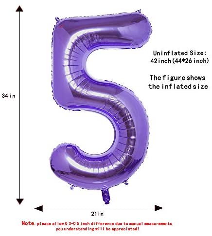 Purple 5 Balloons,40 Inch Birthday Foil Balloon Party Decorations Supplies Helium Mylar Digital Balloons (Purple Number 5)