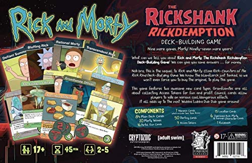 Cryptozoic Entertainment Item Dimensions LxWxH 8 x 3 x 12.25 inches Number of Players 5 Package Type Standard Packaging Sub Rick & Morty