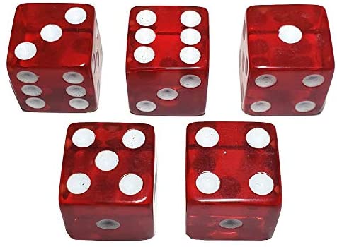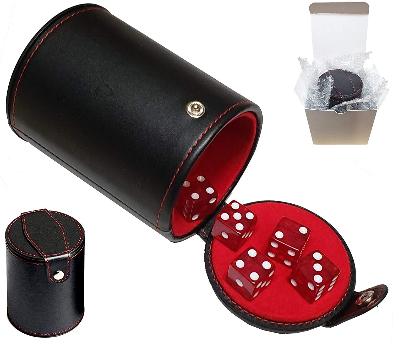 Set of Dice Cup with Storage Compartment Black PU Leather Red Felt Lined + (5) 16mm Tranparent Dice (Gift Boxed) (Red)