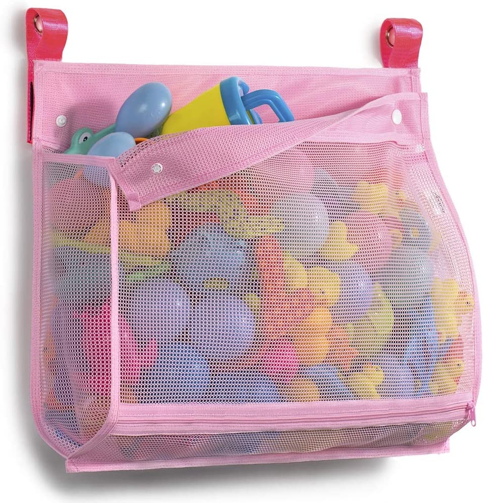Tenrai Mesh Bath Toy Organizer, ( 1 Large, Pink) Bathtub Storage Bag, Multi-Purpose Baby Toys Net, Toddler Shower Caddy for Bathroom, Quick Drying Kids Toy Holder, ZY