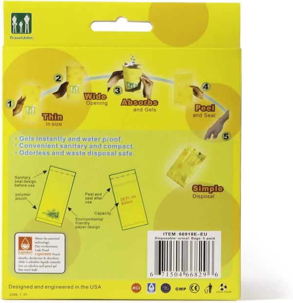 Traveljohn Disposable Vomit/Urine Bag For Children And Adults 5 Pack