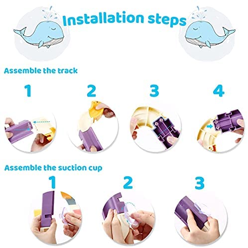 48 Pcs Bath Toys for Kids – The water ball track comes with 48 pcs in total, including 31 colorful assembly tracks , 9 suction cups, 6 sliding balls, 1 leaking cup and 1 rotating wheel.Create a unique bath tracks toy,stick it on top of the wall or glass, then pour the water on the track to make the balls and wheel slide into your bathtub. Bring you kids a cozy and fun bath time. DIY Educational Construction Toys – Encourage your kid to set up a different style shape with this bathtub toy for kids with suction cups, because it will help boys and girls to inspire imagination, creativity, and improve their hands-on ability.Enhance the parent-child bond as you exercise your childs ability to solve problems by using this baby bath toy. Colorful Bath Toy – Regard as a colorful diy bath toys, bright bath toys attract kids’attention and can help preschoolers identify those basic and different colors ,develop kid’s color recognition at an early age and make them fall in love with bathing. Also, no more worry about mold and color fading, the bath toy slide is made of safe high-quality ABS material, and the smooth edges can protect skin from scratching. Widely Used in Many Places – This bath toys for kids ages 4-8 not only can be sticked on the ceramic wall of your bathroom, but also on other smooth surface places like glass window, glass door, fridge and cabinet door. Various playing methods make the bathing more enjoyable. Perfect Gift for Kids – It is an excellent choice for you to give your kids a birthday gift, Christmas gift or prize. Recommended this toddler bath toys for kids ages 2-8. This funny bath track toys can make the process of showering more interesting,and enjoy a happy bath time for yourself and your child.