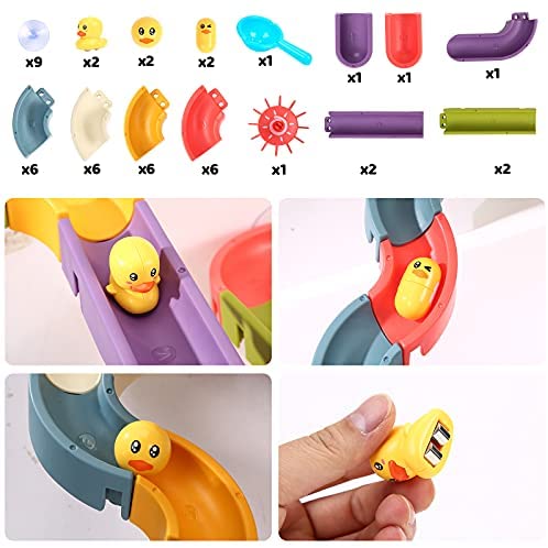 wellvo Kids Bath Toys 48 Pcs DIY Slide Water Ball Track Suction Cup Floating Duck Shower Bathtub Toys for Toddlers Kids Boys Girls Bath Waterfall Tub Toys Bath Toys for Toddlers 3-4 Years