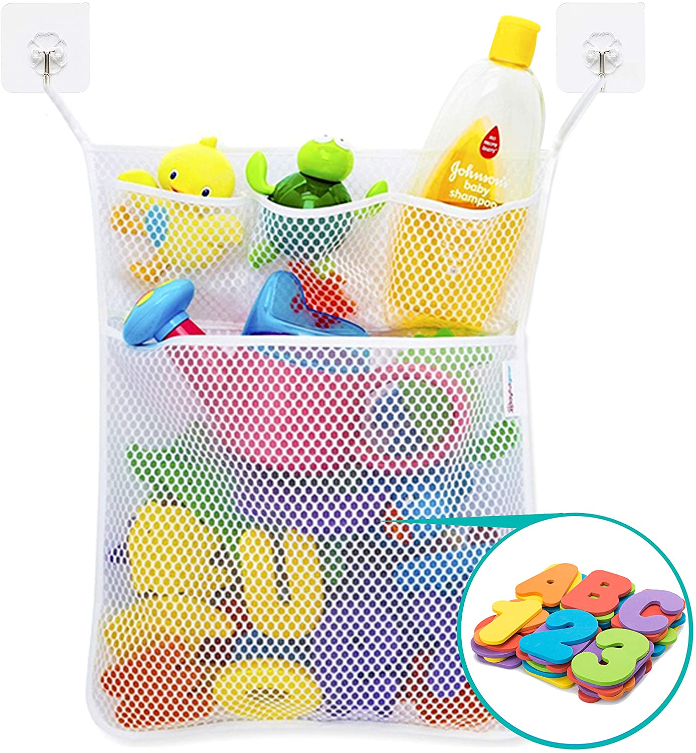 Wemk Bath Numbers and Letter, 36 Pieces Alphabet & Numbers (A-Z, 0-9), with Bath Organizer and 2 Self-Adhesive Hooks, Best Educational Bathing Companion, Suitable for Ages 3+ Years