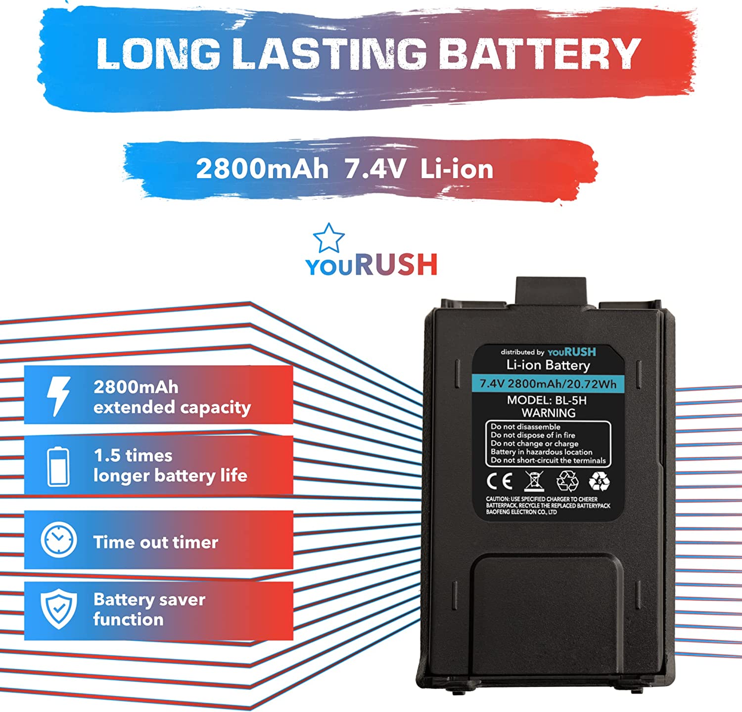 youRUSH UV-5RUSH Iron Handheld Radio 8W with 2800mAh Battery BL-5H Improved by youRUSH UV-5R Portable Two Way Radio. Dual Band Ham Radio UHF/VHF with USA Warranty 5 Years…