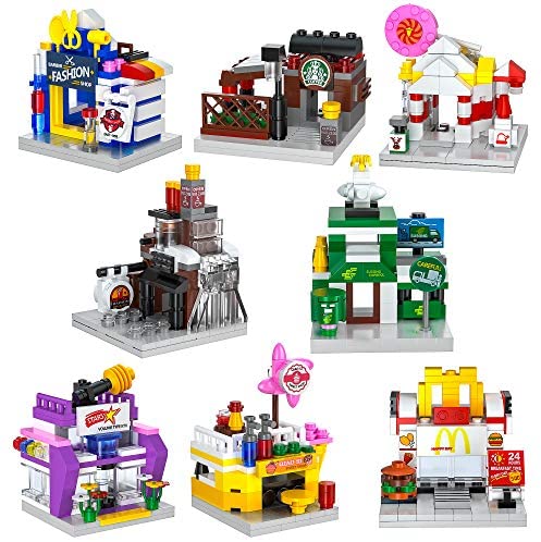ZornRC 8-in-1 Street City Creator Store Townhouse City Set Educational Construction Kit with Hair Salon Dessert House Café Burger Station Bar Christmas Party Favors for Kids